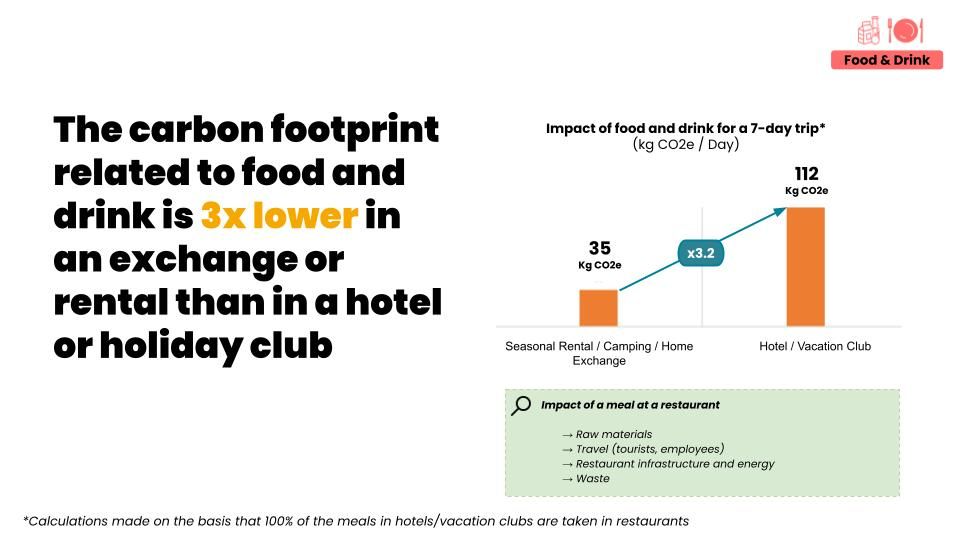 - Accommodation: choosing a home exchange is 49% less carbon intensive than staying in a hotel or vacation club.