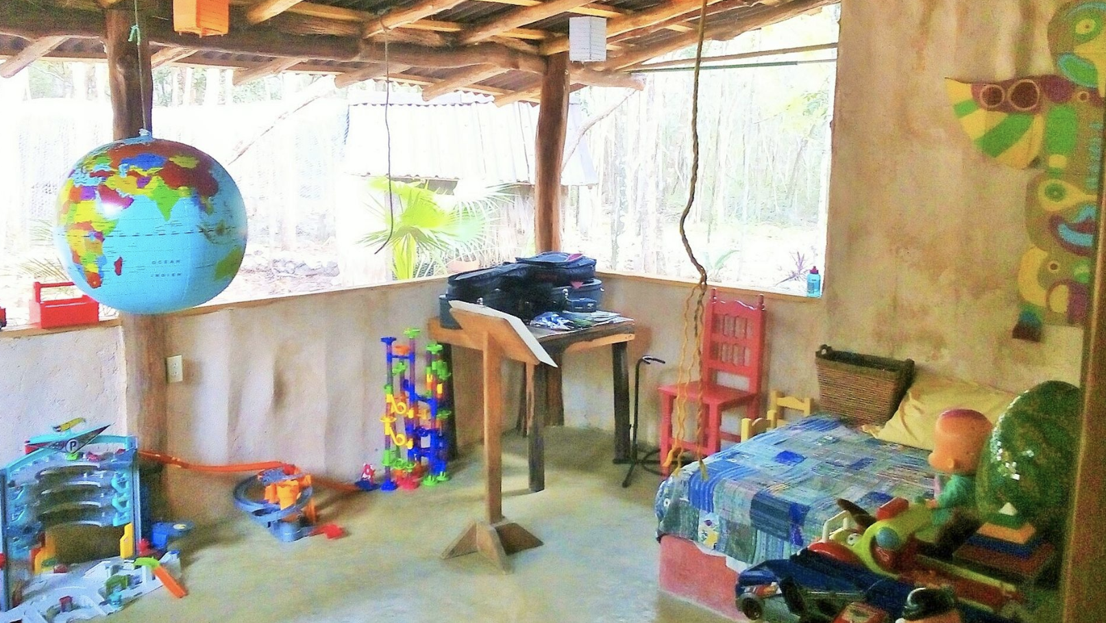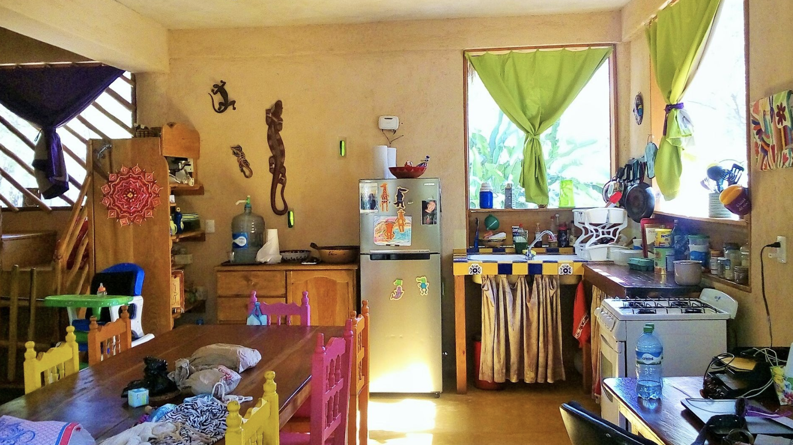 This house swap in Tulum, Mexico, is solar-powered, uses dry toilets, and has no windows, just mosquito nets, keeping the whole house cool during the summer. The home is family-friendly, with a large garden and plenty of toys for kids.