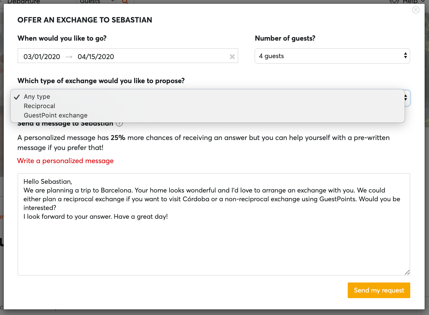 You may have noticed that you can now select the type of exchange in the first message sent. This will help you to be more precise about the exchange you want to arrange.