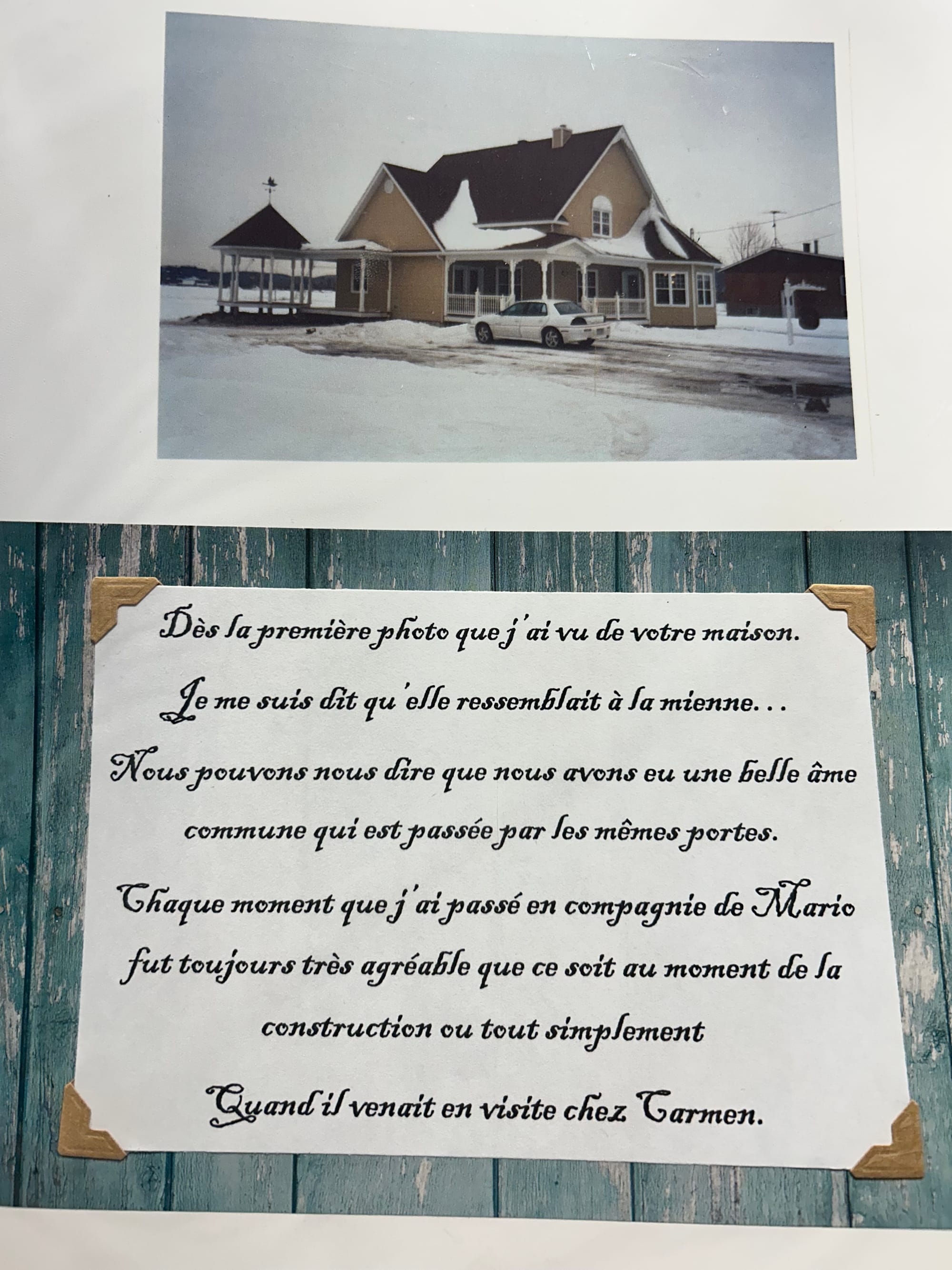 I can't explain it, but this exchange, this encounter, with this exceptional woman, Jacinthe, will forever be etched in my heart. Jacinthe poured all her love into the photo album filled with pictures of my father building his house. Step by step, I was able to watch him construct this home in which I was sitting there, at the table, on December 25, 2022. This exchange also allowed me to gather my extended family for an evening and pay tribute to my father in this exceptional house.