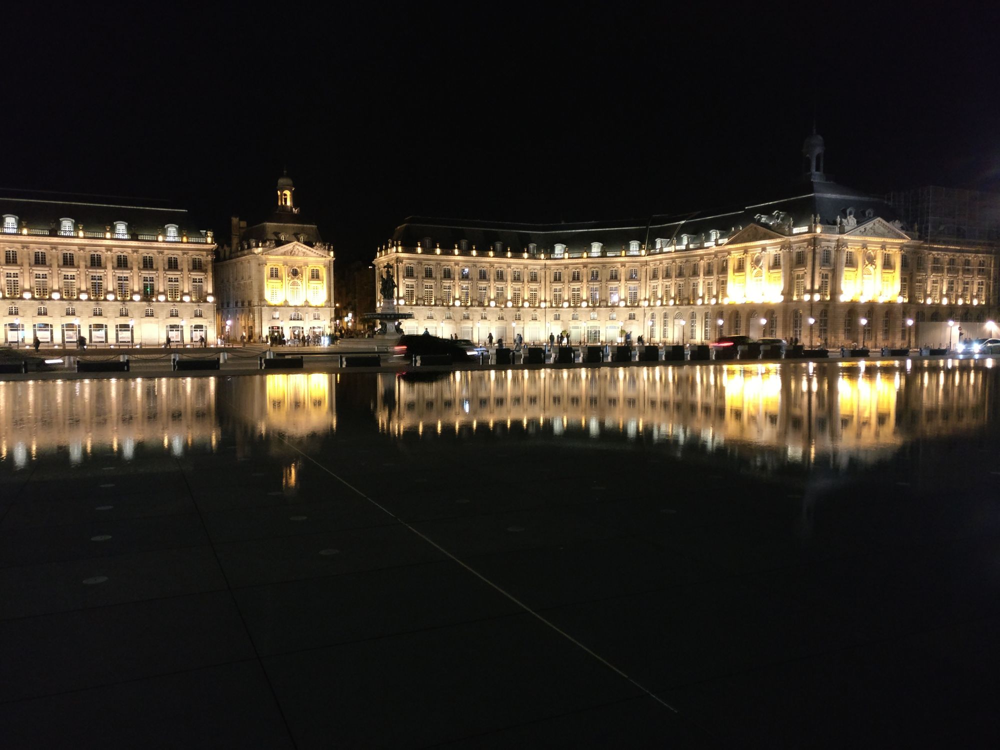 We also discovered a little jazz club in this area, so stayed the evening (and discovered that I liked jazz a lot more than I anticipated). On the way home we passed on the way, The Miroir d’Eau (water mirror), just a couple of centimeters of water giving the perfect combination of reflections. Watching children and dogs paddling in the shallow water, was a joy and when the evening lights came on and were reflected in it, it was really a very romantic spectacle.