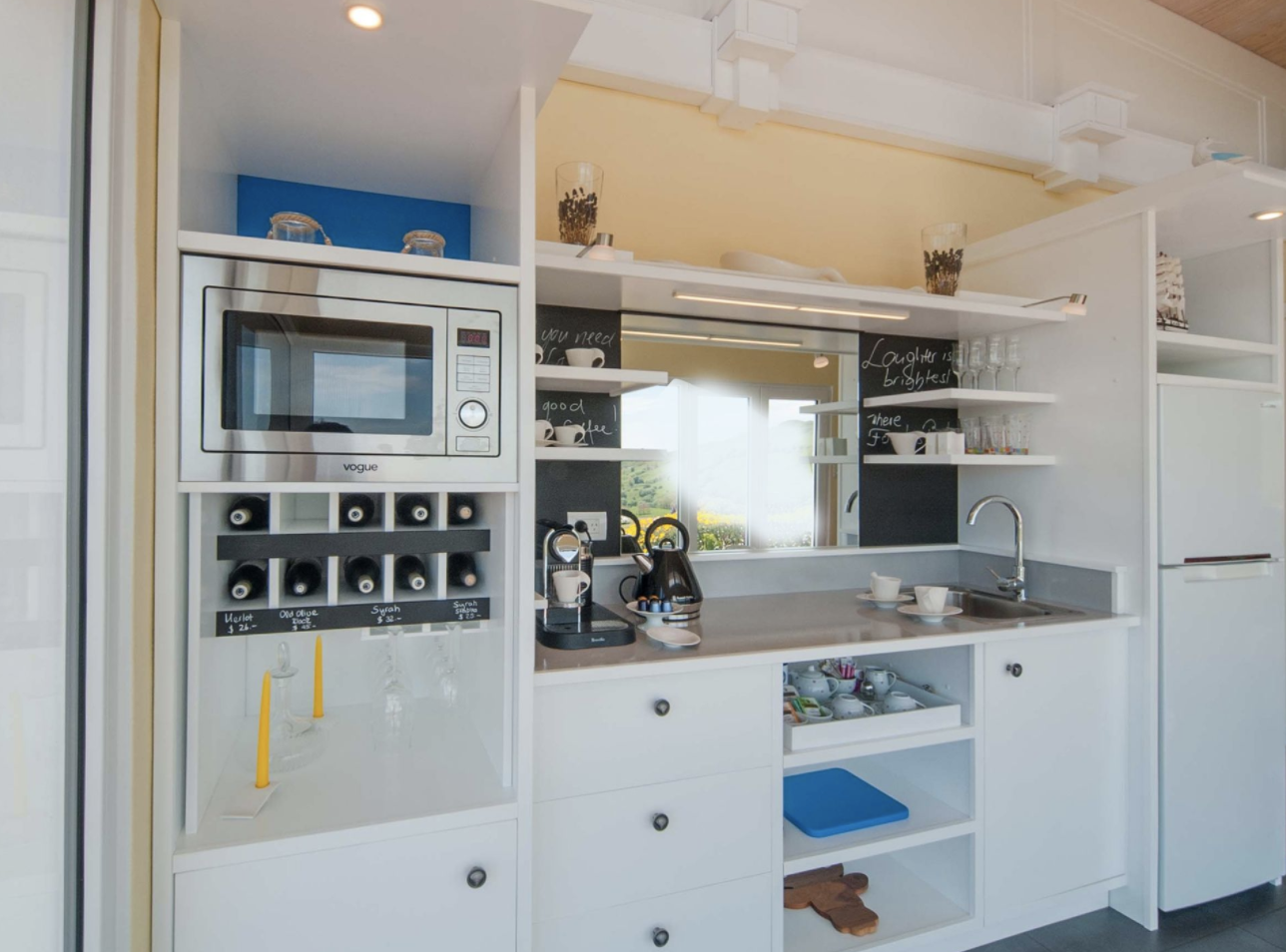 This jaw-dropping property was originally a dairy farm, with the original dairy bales still standing today. Guests can enjoy fresh food from the orchard, vegetable patch, and chicken coop, cooking in the home's well-appointed kitchen.