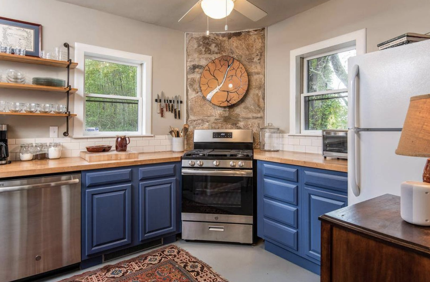 If you're looking for a cabin but still want all the amenities, this home exchange in the mountains of western North Carolina will suit you perfectly. You can look forward to WiFi, Netflix, board games, a beverage bar, indoor fireplace, fully stocked kitchen, washer and dryer, hammock and fire pit— all while still being in a small cabin community near waterfalls and a swimming hole.