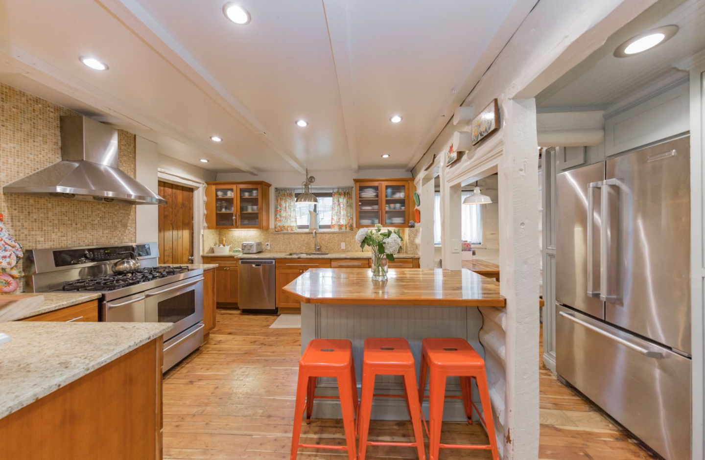 You don't have to choose between a historic log cabin and contemporary luxury— this home exchange has both! This full restored and modernized historic cabin is nestled in a wooded, secluded area for a completely peaceful vacation. There are stunning sunsets, a river, and nearby apple orchards to keep you content if you never leave the cabin. If you do want to explore, you'll find plenty to keep you busy.