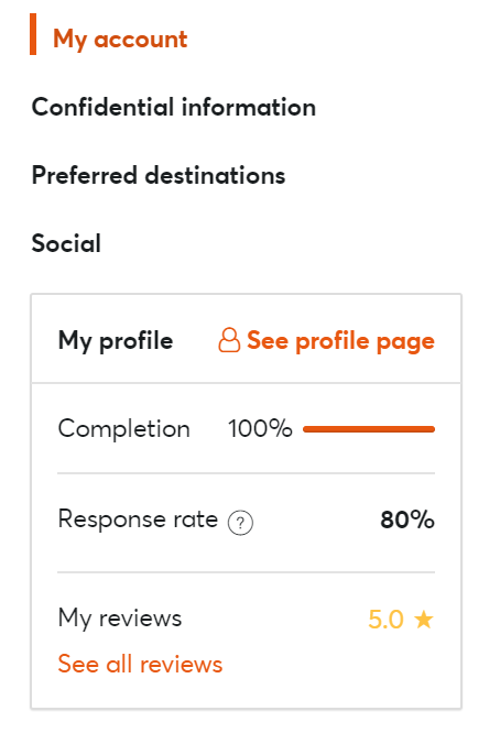 Wir haben den Überprüfungsprozess für Ihr Profil vereinfacht. Jetzt können Sie einfach die erforderlichen Dokumente auf unsere Plattform hochladen und innerhalb 24 Stunden überprüft das Team Ihr Profil. Dieses Tool hat sich als sehr nützlich erwiesen, da 76% der Gäste, die einen Austausch abgeschlossen haben, wählten die Überprüfung ihres Profils.