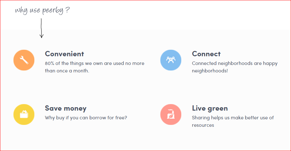 La filosofía de Peerby es la siguiente: 80% de los bienes que poseemos no son utilizados más que una vez al mes, por tanto, ¿por qué no compartirlos con nuestros vecinos? ¿Por qué gastarnos el dinero cuando podemos tomarlos prestados? ¡En Peerby podrás encontrar desde una barbacoa hasta una maleta! Además, gracias a Peerby, podrás conocer a tus vecinos y vivir de manera más sostenible. Sólo tienes que crear tu cuenta para descubrir lo que tus vecinos estás dispuestos a compartir contigo. También puedes crear tu anuncio para ofrecer lo que quieras.