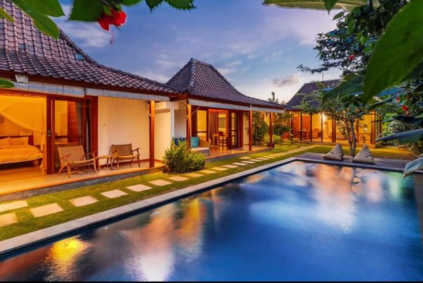 2 Bdr Joglo-Style Villa in Seseh, Bali - 5min Walk to Beach, Enclosed w/ AirCon, Large Garden & Pool