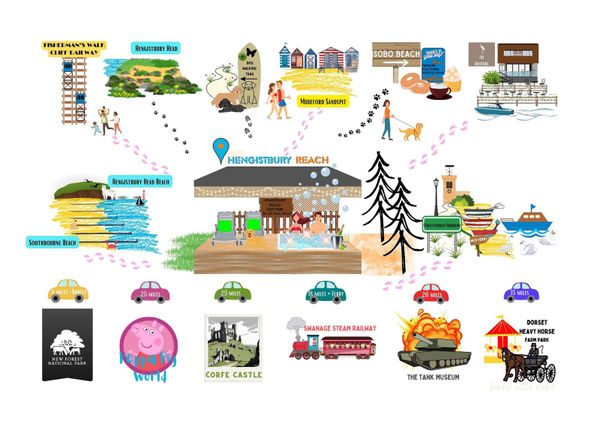 Hengistbury Reach:2 bedroom coastal holiday let near beaches & New Forest. Feature lit hot tub.