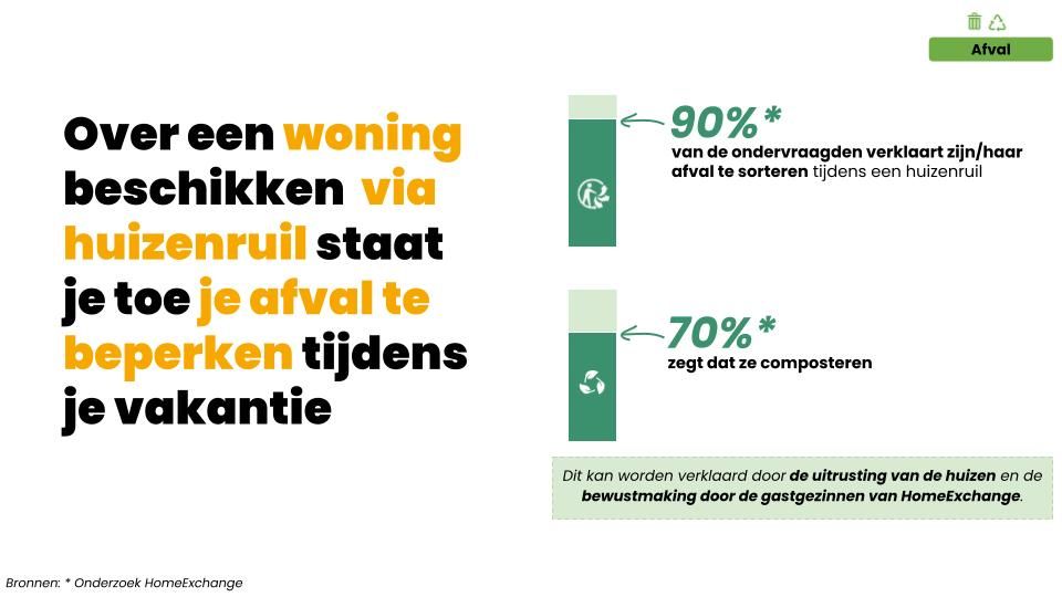 - Afval: HomeExchangers zijn bijzonder gevoelig voor afvalbeheer, dat, hoewel relatief gering in de ecologische voetafdruk, een belangrijke kwestie blijft voor de biodiversiteit!